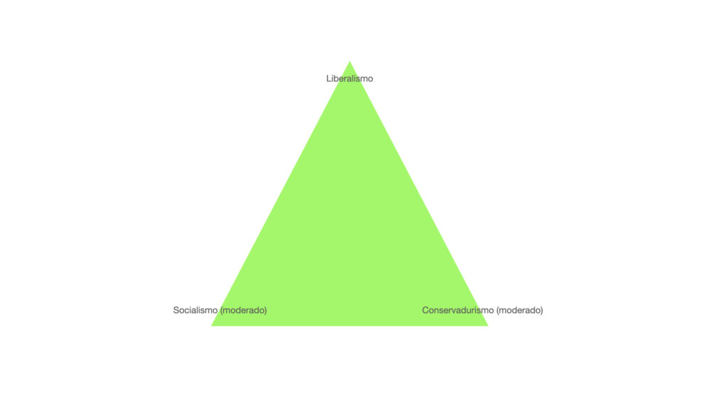 Hayek propuso un triángulo imaginario para describir el espacio político cuyos representaban el liberalismo, el conservadurismo y el socialismo. Estas eran las ideologías políticas defendidas por los principales partidos europeos de la época.