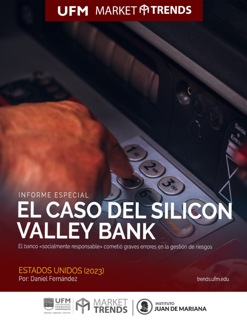 El último informe de Market Trends, elaborado para el Instituto Juan de Mariana y para la Universidad Francisco Marroquín, expone en detalle las circunstancias que han llevado a la caída del Silicon Valley Bank (SVB). El informe se titula El caso del Silicon Valley Bank: un análisis financiero, y está elaborado por el economista Daniel Fernández, doctor en Economía, director de Market Trends y profesor de la Universidad Francisco Marroquín